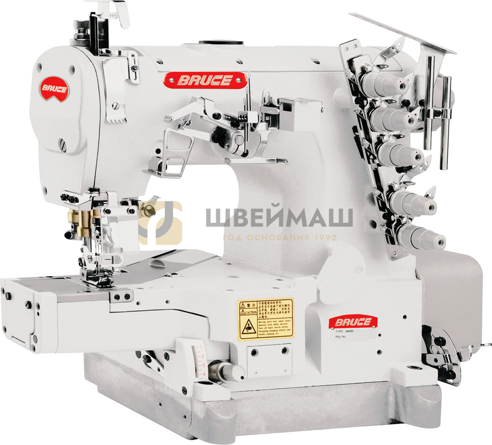 Bruce BRC 664 BDI-35 AC*356 трехигольная плоскошовная машина,цилиндрическая платформа,левосторонняя подрезка края